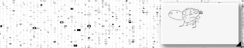 The Sheep Market is a website that lets you look at the 10,000 sheep (all facing left) drawn to order via Amazon’s Mechanical Turk at two cents a pop. Combined into a single graphic, a patch of which you see here, each portrait pops up as you move your mouse over it; a click reproduces the chosen sheep image on the screen. Hours of fun for the whole family.