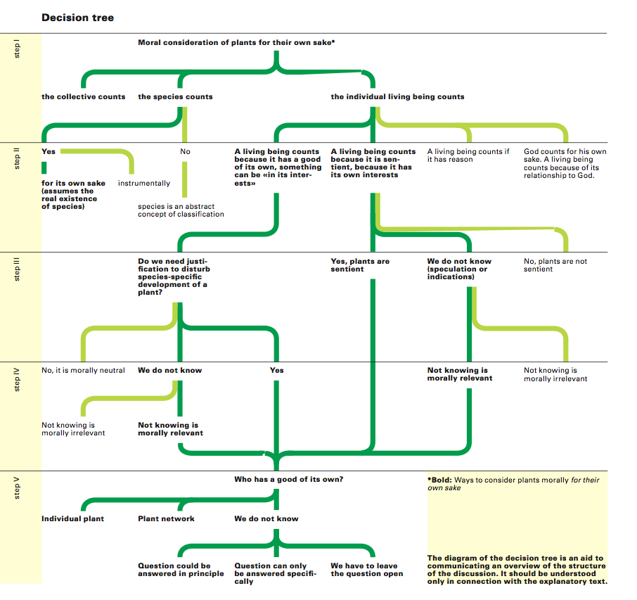 The image below is the “decision tree,” meant, as the document says, to be an aid to understanding the structure of the discussion in the Swiss publication. (Click on it to see an enlarged version.)