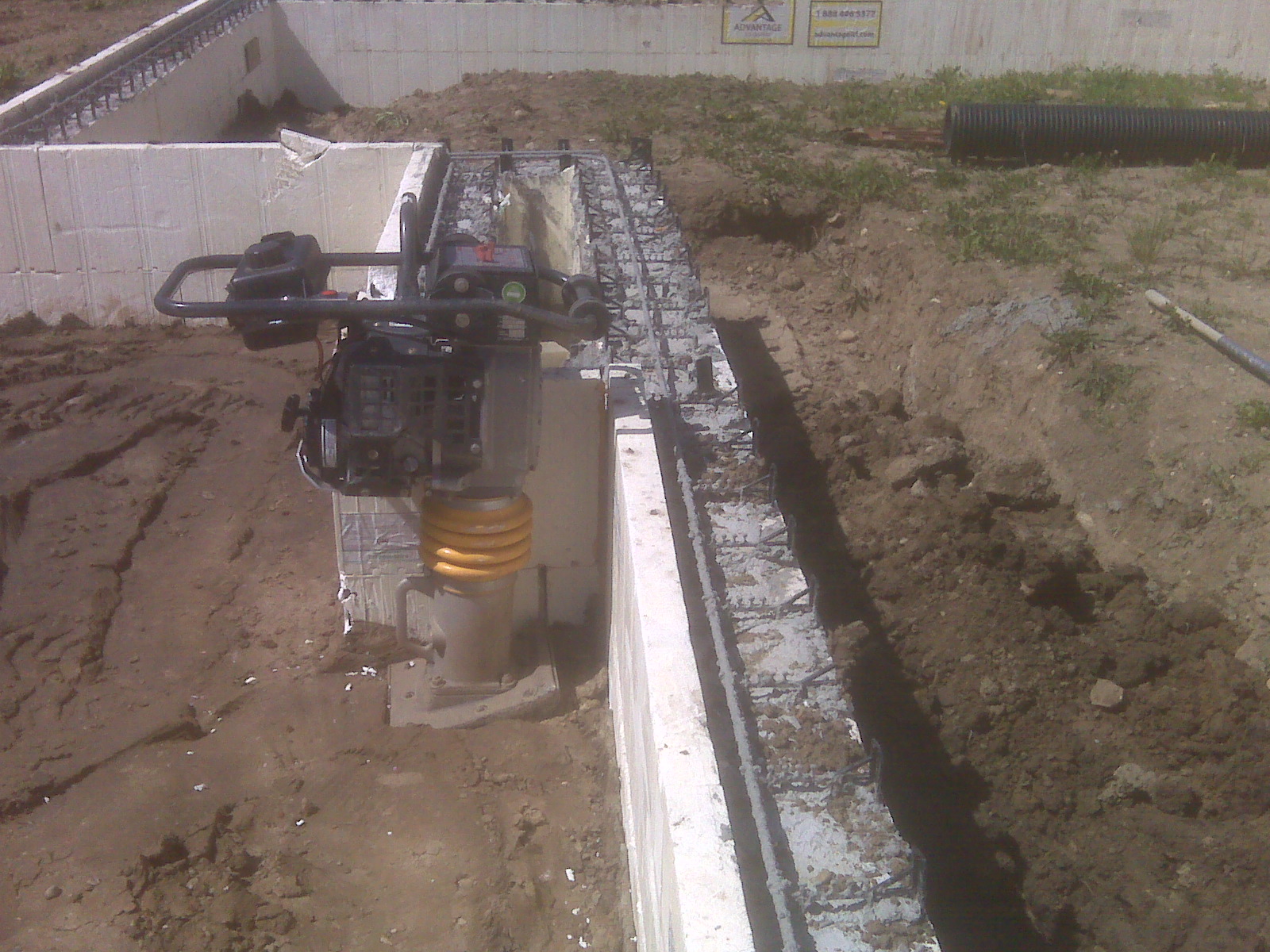 I have been operating a jumping jack while my husband uses our tractor to put dirt in the trench around out new insullated concrete form foundation walls.