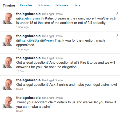 On a slightly more serious note, it will be interesting to see how long the oracle’s efforts will survive scrutiny by the solicitors’ ruling body — and interesting to see what sort of things can in fact be done in 140 characters to make the law more accessible.