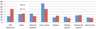 Proof that English and French minds don’t think alike, the approaches taken to find a case varies according to the language of the respondent. English respondents are especially fond of searching by case name where their French peers prefer using the reference to the official report. English users also seem more familiar with neutral citations than the French users.