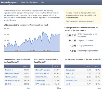 Ever wonder how Google responds to copyright violations? Or, how many URL removal requests it receives from copyright holders? Take a look at Google’s Transparency Report.