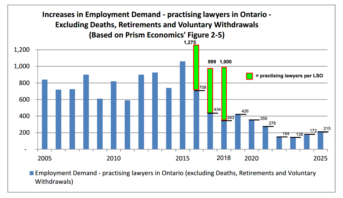 In the Critique, we focused on that projected expansionary demand. It seemed anomalous to us that the projected expansionary demand for lawyers in Ontario would contract so significantly, even to levels far lower than what was seen in the financially-troubled 2008-2009 period.